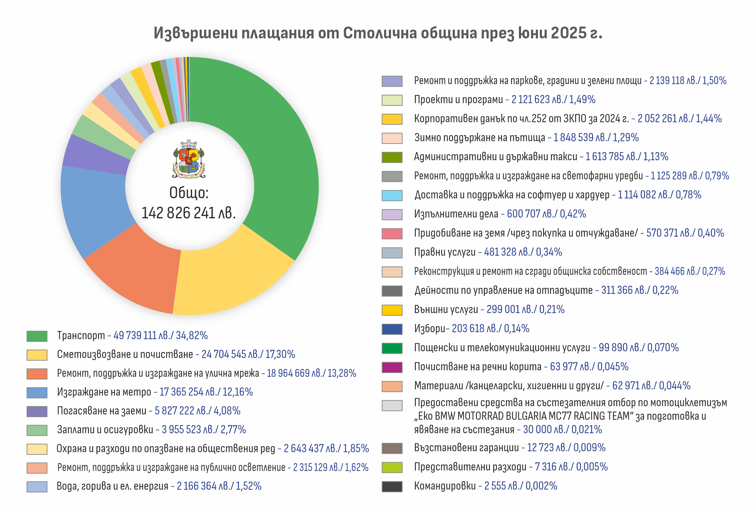 Столичната община публикува информация за всички извършени разплащания, които са направени през месец юни 2025 г.